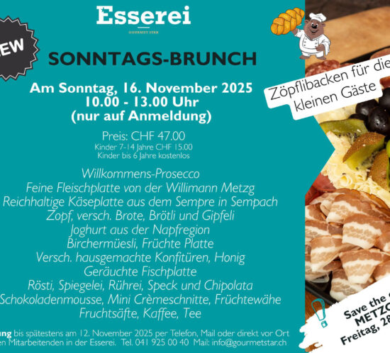 Auch diesen Herbst laden wir Sie herzlich zu unseren beliebten Spezialabenden in der Esserei Sursee ein. Geniessen Sie exklusive Menüs in gemütlicher Atmosphäre – jeweils nur mit Reservation.